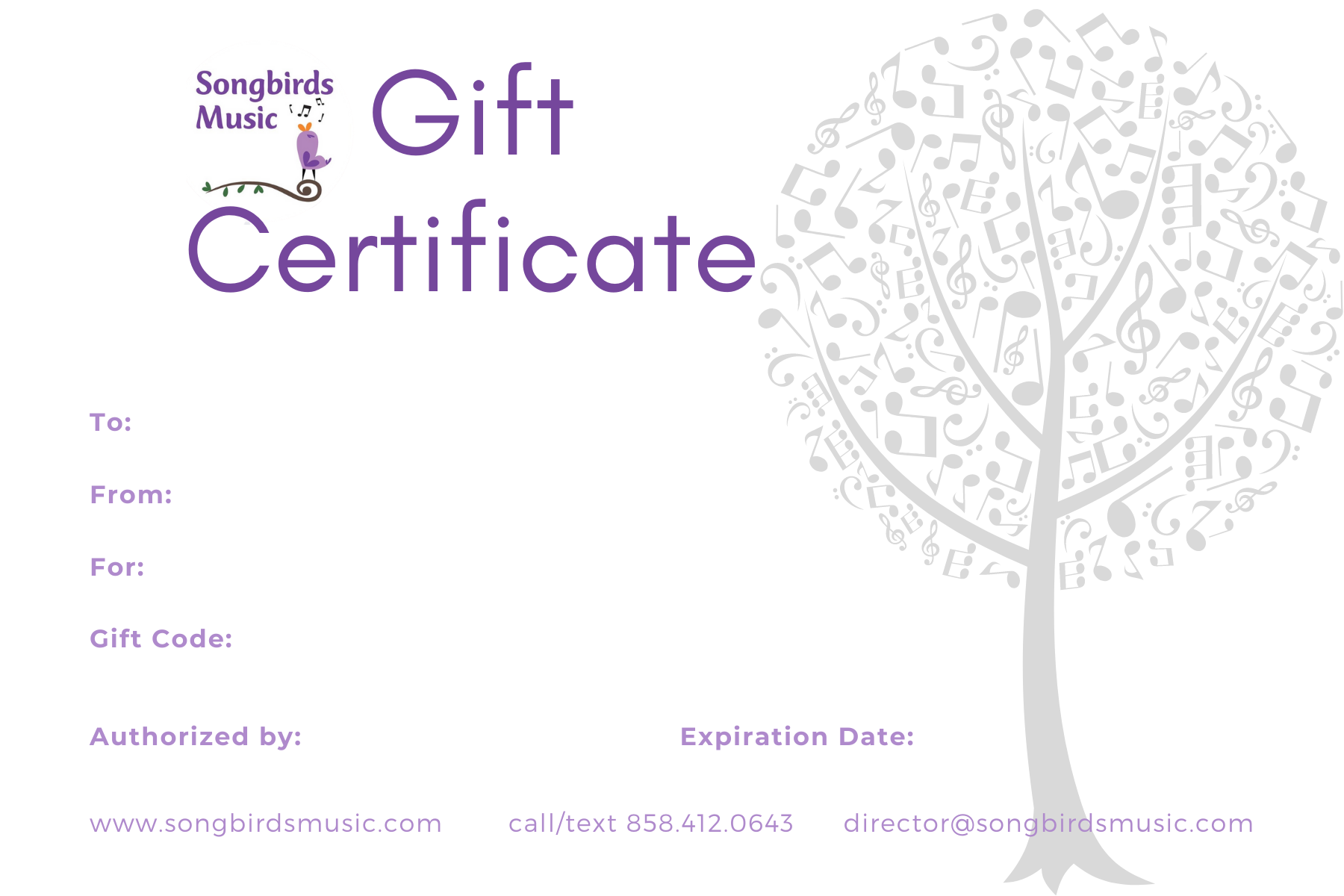 The gift of music is the gift that keeps on giving all year long. Please include the following information so we can send your special gift: