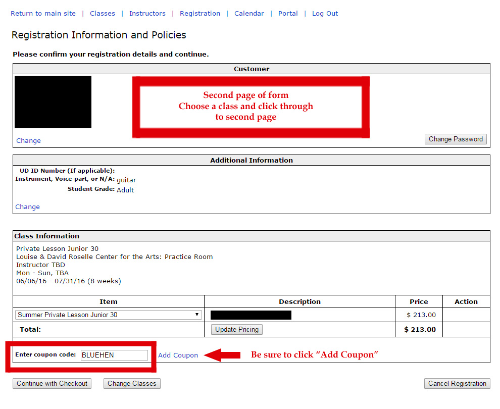 Registrations are not complete until full payment is received. Lessons will not begin and your place in classes/ensembles will not be guaranteed until payment is completed.
