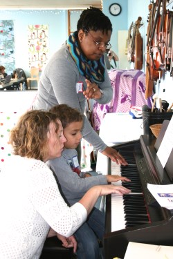 The accelerated class is for the older beginner ages 6-8 with more developed motor skills such as hand-eye coordination. The ability to read at a first or second grade level and understand simple instructions in the method book is necessary. Students also work from a lesson and theory book as well as complete written and ear training exercises. More concepts are presented each week than in the non-accelerated class. The class consists of eleven thirty-minute sessions in the fall and thirteen thirty-minute sessions in the spring.