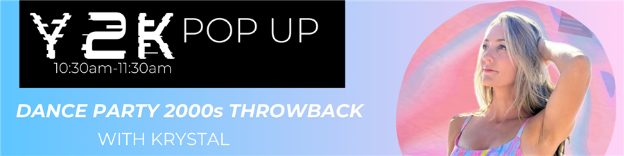 A one-hour cardio dance party with Krystal! The class will be packed with Y2K throwbacks! Be ready for good movement, sweaty smiles, and ‘I forgot how fun this is’ kind of energy. Expect a Zumba-style dance party workout set to iconic 2000s hits and guilty pleasures. You’ll get your heart pumping and confidence higher than your low-rise jeans! No dance experience needed. Just show up, move your body!