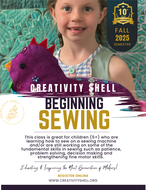 This class is great for children (5+) who are learning how to sew and/or are still working on some of the fundamental skills in sewing such as patience, problem solving, decision making and strengthening fine motor skills.