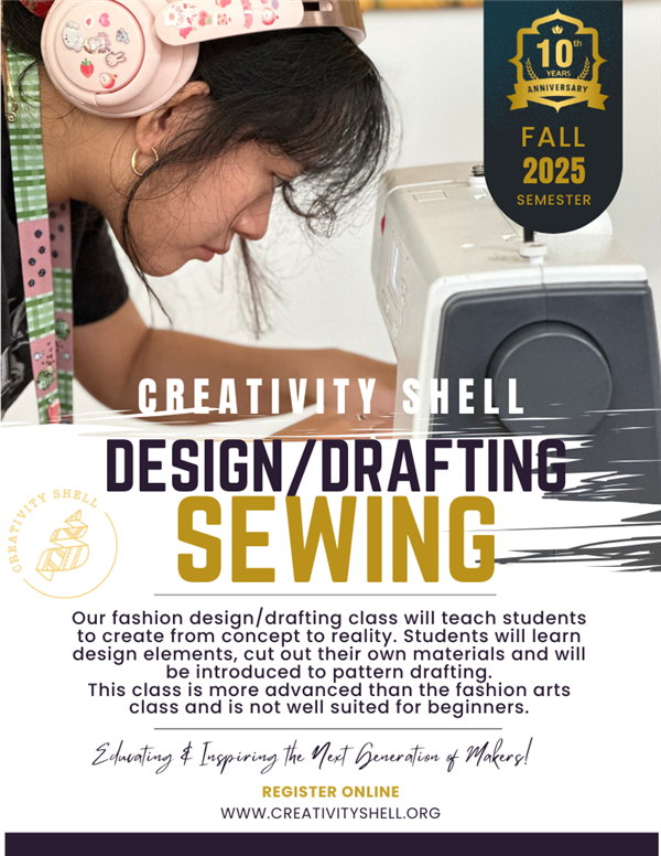 Our fashion design/drafting class will teach students to create from concept to reality. Students will learn design elements, cut out their own items and will be introduced to pattern drafting.