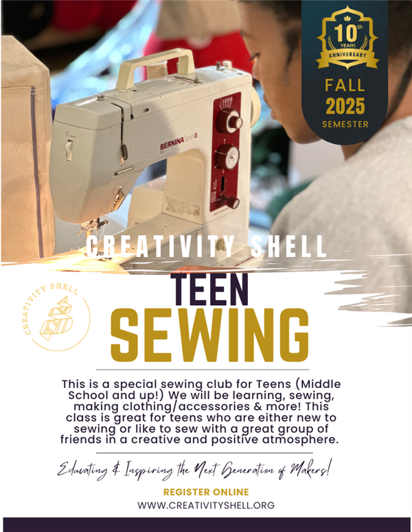 This is a special sewing club for Teens (Middle School and up!) We will be sewing, creating clothing, accessories and more! This class is great for teens from beginner to intermediate levels of sewing.