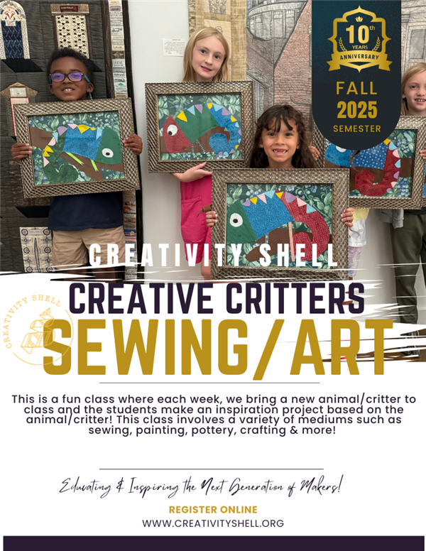 This is a fun class where inspiration comes from local critters! In this class, students will sew, craft and create based on the surprise animal each week.