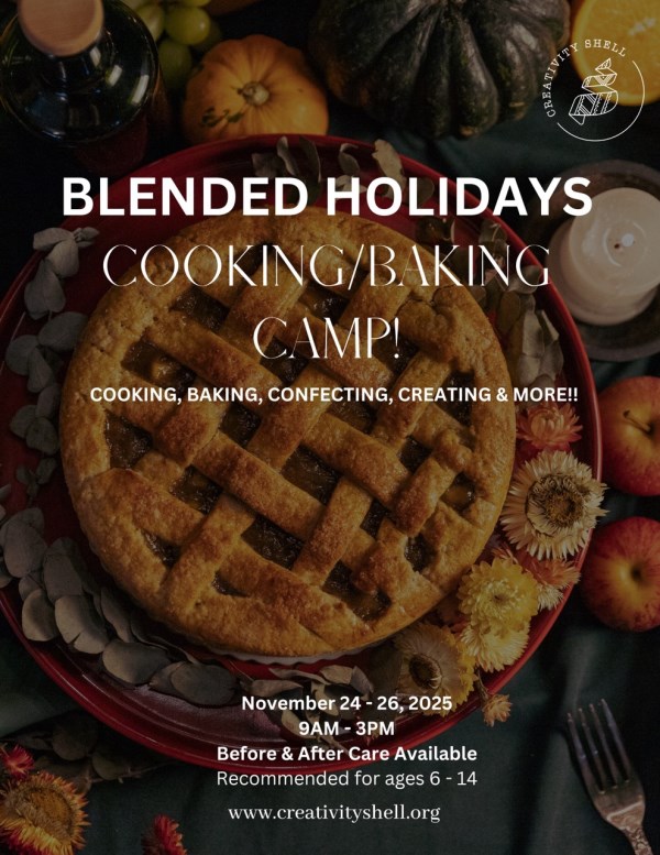 This Thanksgiving, let your kids mix creativity with flavor at the Creativity Shell’s “Blended” Cooking & Baking Camp! Students will explore the art of blending & combining classic recipes with fun, modern twists to create delicious new meals and treats.