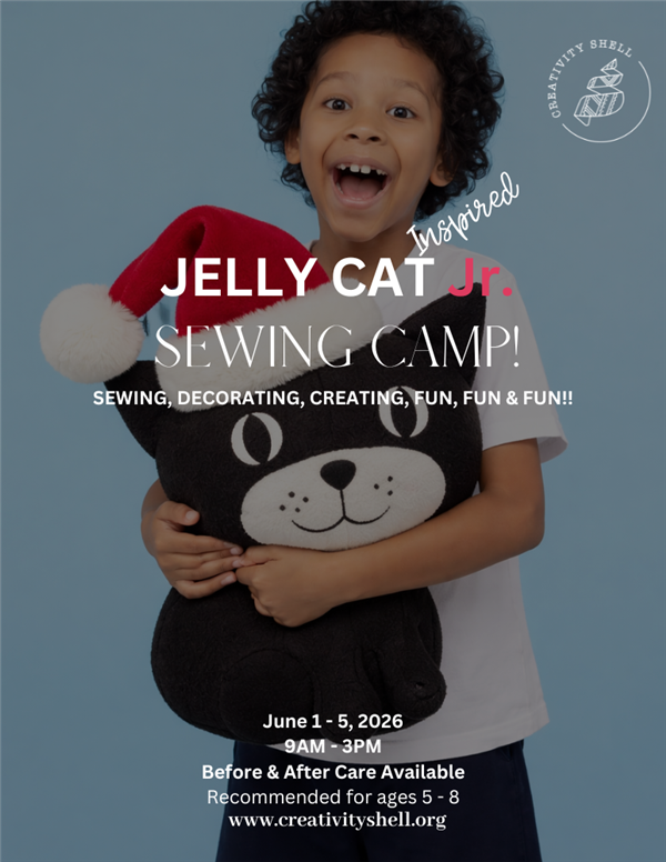 During Jelly Cat Inspired Sewing Camp, students will enjoy a full week of creativity as they design and sew playful projects inspired by the cozy, whimsical look of Jelly Cat favorites. From making clothing that looks like Jelly Cats to creating toys and fun accessories, every day is packed with imagination and hands-on learning.
