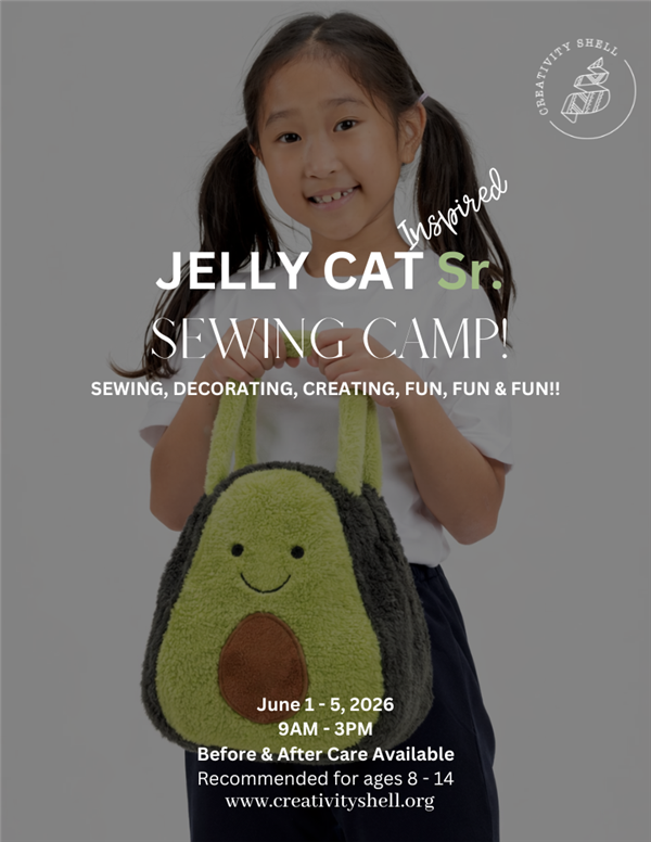 In our Advanced Jelly Cat Inspired Sewing Camp, students will take on more detailed and skill-building projects inspired by the playful, whimsical style of Jelly Cat creations. From more complex plush toys and structured accessories to clothing pieces with added details, this week is all about pushing skills further while still having a lot of fun.
