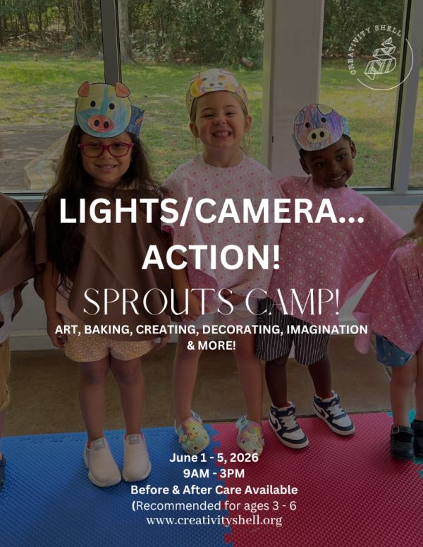 Get ready to spark your little one’s curiosity and creativity. Lights Camera Action invites our Sprouts to explore the fascinating world of photography, film, and printing through hands-on art and imaginative play.