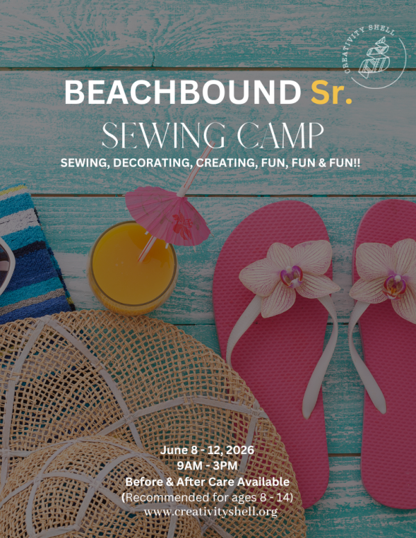 Designed for intermediate and more advanced sewists, this camp focuses on sewing beach-ready clothing and accessories with more detailed construction and finishing techniques. Students will work on projects that may include added structure, closures, and design details, allowing them to stretch their skills while still having plenty of creative freedom.