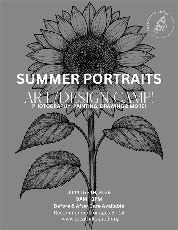 This camp encourages self expression, observation, and creativity while helping students grow their artistic confidence and skills. By the end of the week, each student will have a collection of portraits that reflect not only what they see, but how they see the world.