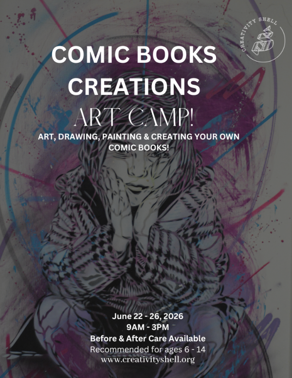 Comic Book Creation Art Camp is perfect for students who love drawing, storytelling, and creating worlds of their own. By the end of the week, each camper will leave as a published comic creator with a story that is uniquely theirs.