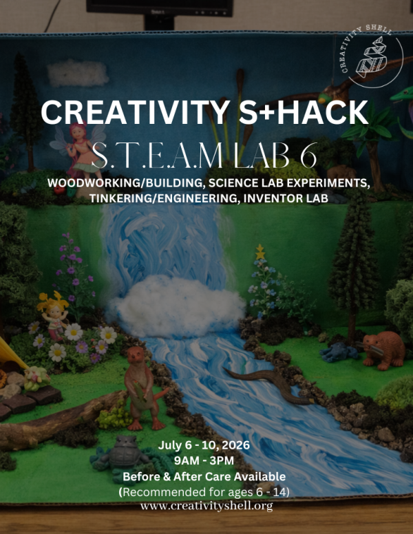 Creativity STEAM Shack 6 Camp encourages curiosity, critical thinking, and creativity while showing students how Science, Technology, Engineering, Arts, and Math connect in real world applications.