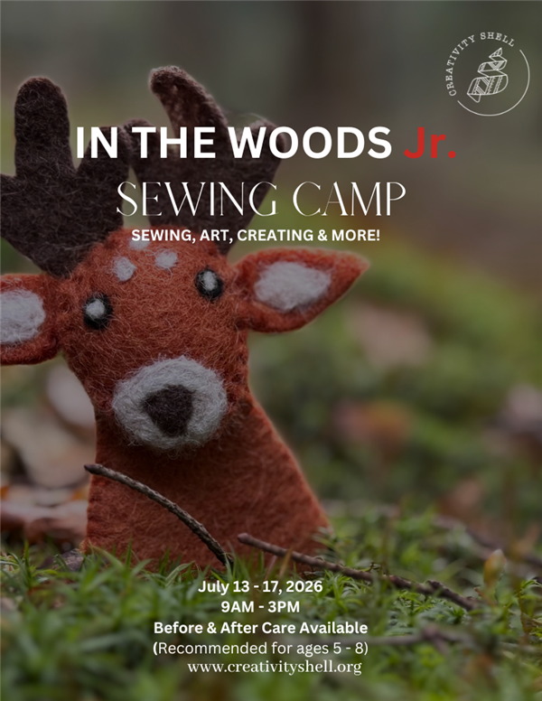 In our In the Woods Clothing, Toys, and Accessories Camp, junior sewing students will explore a whimsical forest world filled with creativity and wonder. Throughout the week, students will sew playful projects inspired by woodland magic, creating items that feel straight out of a storybook.