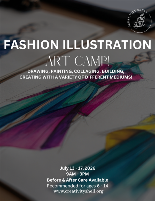 Throughout the camp, students will learn the fundamentals of fashion illustration, including proportion, movement, garment details, and how fabric and textiles influence the way clothing is drawn. Using student friendly life drawing techniques, campers will practice sketching figures in motion and bringing personality and style into their designs.