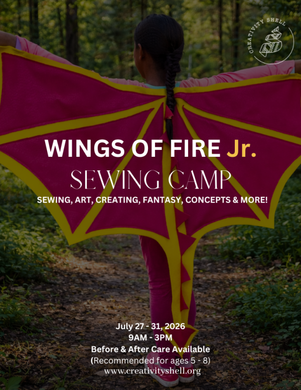 Some of our junior students may already love the Wings of Fire series, and others may be discovering it for the very first time. Either way, this camp is designed to spark curiosity, creativity, and a love for storytelling. Inspired by the magical world of Wings of Fire, students will sew fun and imaginative projects that bring the spirit of the series to life.