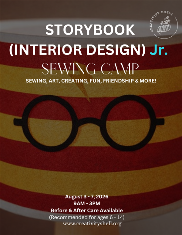 Storybook Sewing Camp Interior Design is all about turning beloved storybook inspiration into real, usable design pieces. Many storybooks feature the most fantastic interiors, and in this camp, students will bring that creativity to life through sewing. From lamps to pillowcases, curtains to carpets, campers will design and create a collection of interior décor projects inspired by storybook worlds.