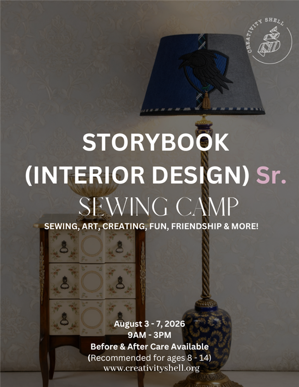 Storybook Sewing Camp Interior Design for senior sewing students is designed for experienced sewists who are ready to explore sewing through the lens of interior design. Many storybooks feature richly detailed rooms and magical spaces, and in this camp, students will translate that inspiration into functional, thoughtfully crafted design pieces.