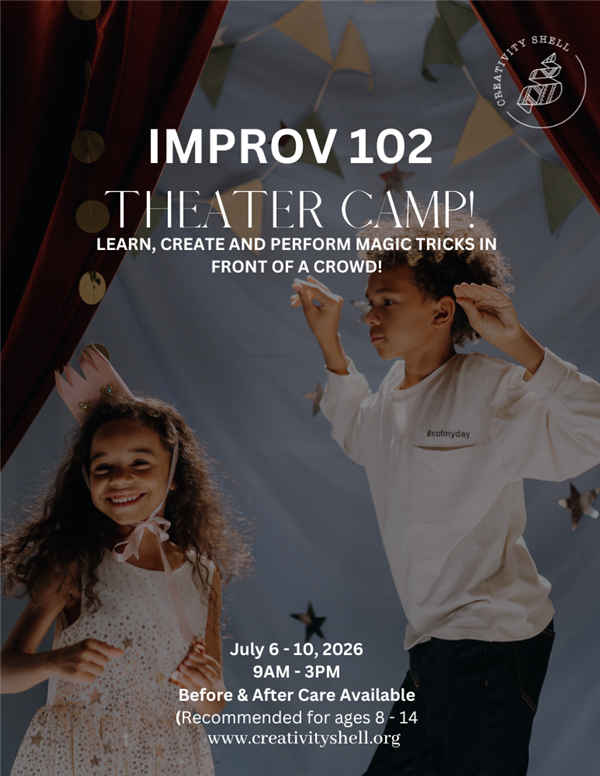 Get ready to think faster, play bigger, and laugh harder. Improv Theater 102 Camp is a dynamic, high energy camp designed for students who want to sharpen their improvisation skills—or jump in for the first time in a fun, welcoming environment.
