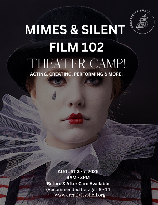 Throughout the week, students will build on foundational mime techniques while exploring more advanced movement, facial expression, and physical storytelling inspired by classic silent films. Campers will practice creating clear characters, dynamic scenes, and visual narratives using only their bodies and imagination.