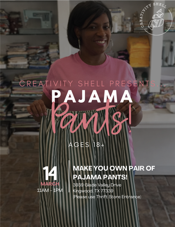 In this hands-on class, each participant will learn the basics of using a sewing machine while creating their very own pair of cozy pajama pants from start to finish. You’ll practice reading a simple pattern, cutting fabric, sewing seams, and inserting elastic to create a comfortable waistband.