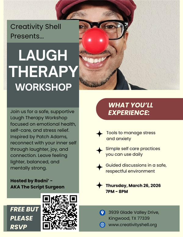 Join us for a safe, supportive Laugh Therapy Workshop focused on emotional health, self-care, and stress relief. Inspired by Patch Adams, reconnect with your inner self through laughter, joy, and connection. Leave feeling lighter, balanced, and mentally strong.