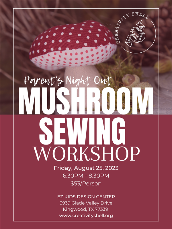 Please join us for a fun Mushroom “Pillow” Sewing Workshop/Parent Night Out!