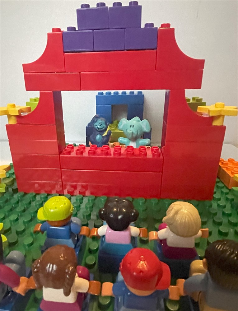 Teamwork! Beautiful lego rainbow for our Over The Rainbow Park story.