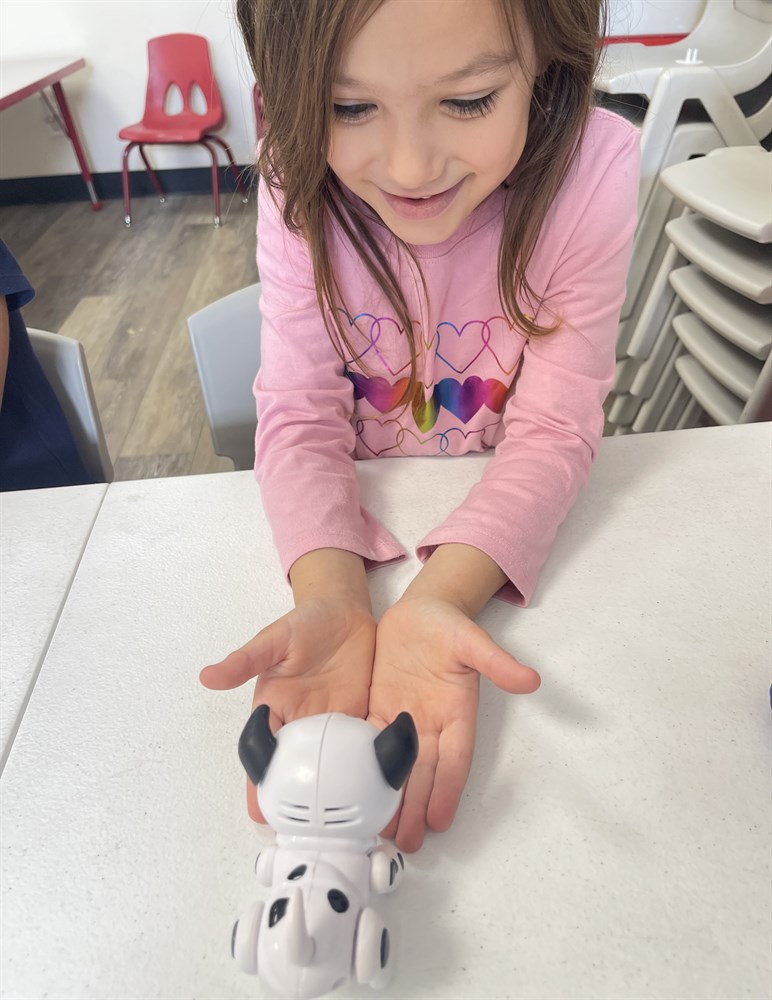 Playing "Dizzy Builder" with Tipster. Stacking as many items (mini robots) on Tipster's ladders before we program him to spin. How many items stayed on?