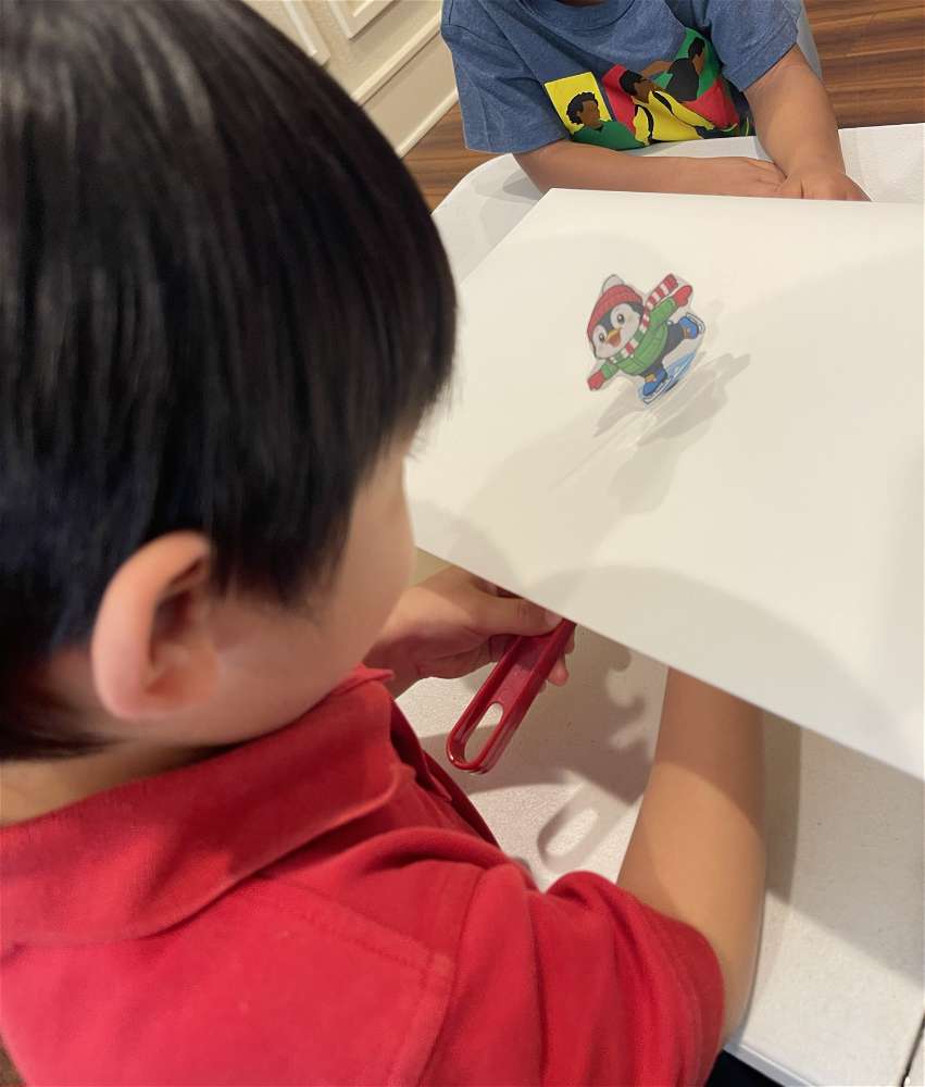 Another "refration of light" experiment. Can we see the photo if we look through the top of the beaker? What if we look from the side?